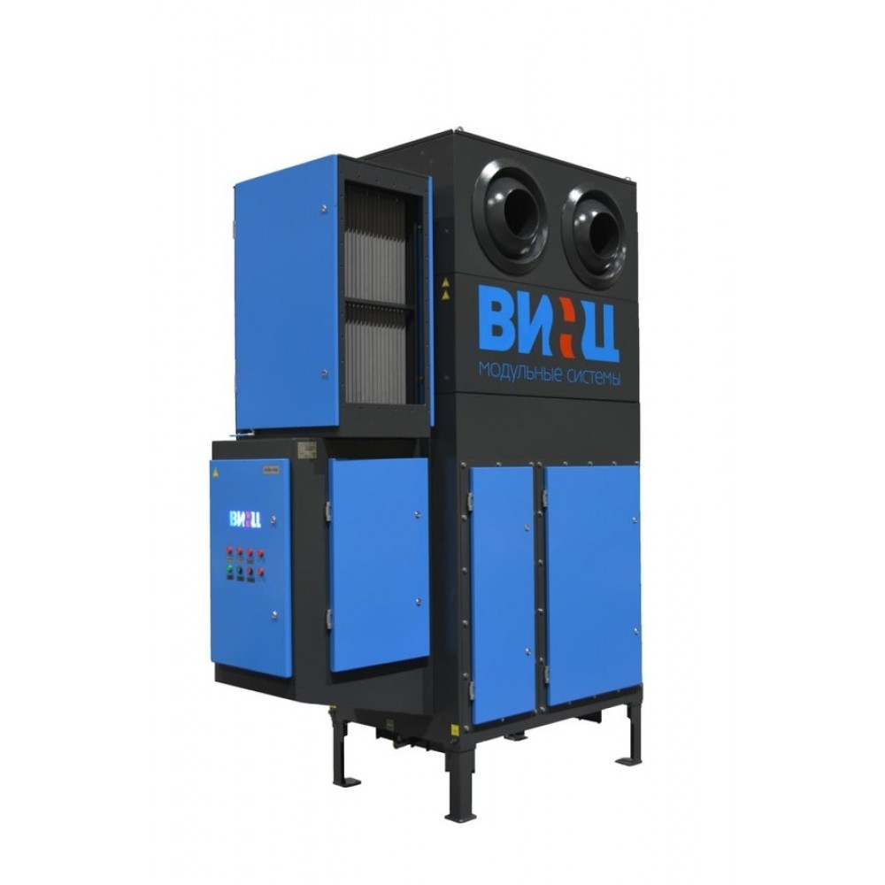 - Дополнительные блоки, в том числе блок-теплообменник устанавливаются в виде надстройки над основной вентиляционно-аспирационной установкой, при этом изменяется только общая высота установки.