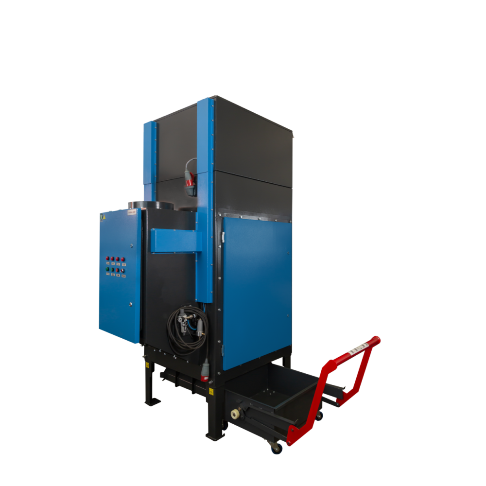 - Система автоматического пожаротушения включающая: спектральный датчик открытого огня, порошковые разрывные огнетушители 2 шт., свето-звуковая индикация оповещения возгорания, муфта для подсоединения пожарного шланга к корпусу установки, аварийная остановка вентилятора при срабатывании системы пожаротушения;