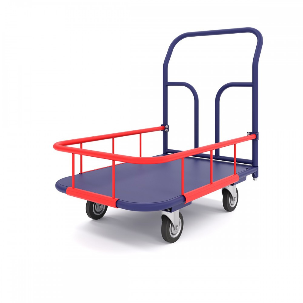 Тележка платформенная серии ТПБ с быстро устанавливаемым бортом (высота борта 170 мм). Борт служит для надежной фиксации груза, предотвращает скатывание и падение груза с платформы тележки.