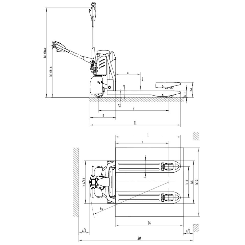 | Ширина рабочего прохода при укладке паллеты 1000 х 1200 поперек | 1804 Ast \ mm |